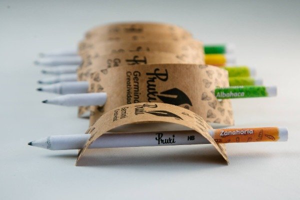 Estos a su vez contienen en su cabo semillas de plantas aromáticas, hortalizas o frutas, que al finalizar la vida útil del lápiz pueden plantarse y generar un nuevo ciclo de vida.